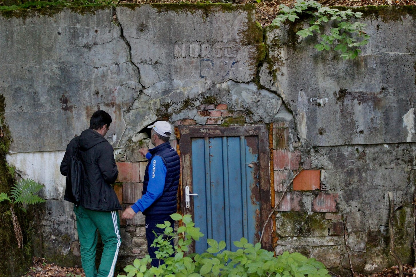 Dincolo de această clădire, ascunsă după crengile dese ale unor copaci, se află gura unei galerii, din care curge apă. Mai încolo e o altă galerie, închisă cu o ușă de metal. Deasupra scrie "Noroc". "Bun" a dispărut.